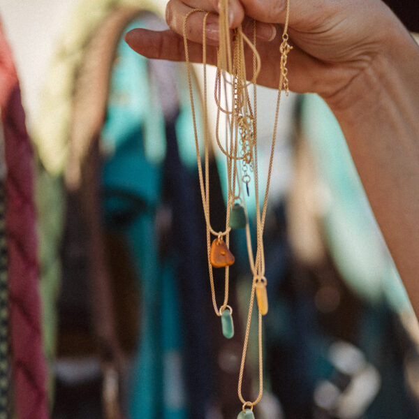 To właśnie w takich przestrzeniach rodzi się Into the Wild — kolekcja biżuterii z morskiego szkła, stworzona z fragmentów natury, które przetrwały w ciszy. Każdy kawałek seaglassa to historia — wygładzona przez fale, ogrzana słońcem, odnaleziona pośród bezkresu.
