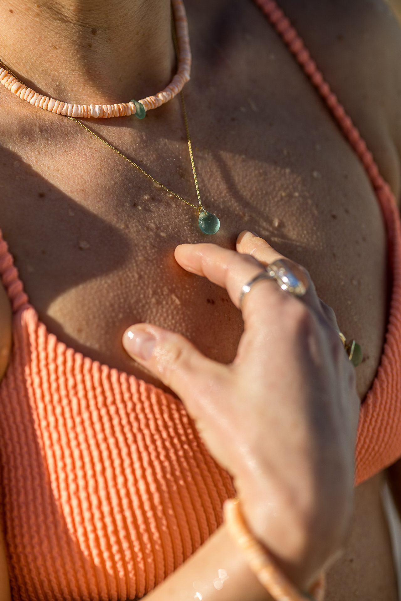 Naszyjnik wykonany ze srebra złoconego metodą goldfilled. Nie trzeba go zdejmować ani do kąpieli w morzu ani na co dzień.