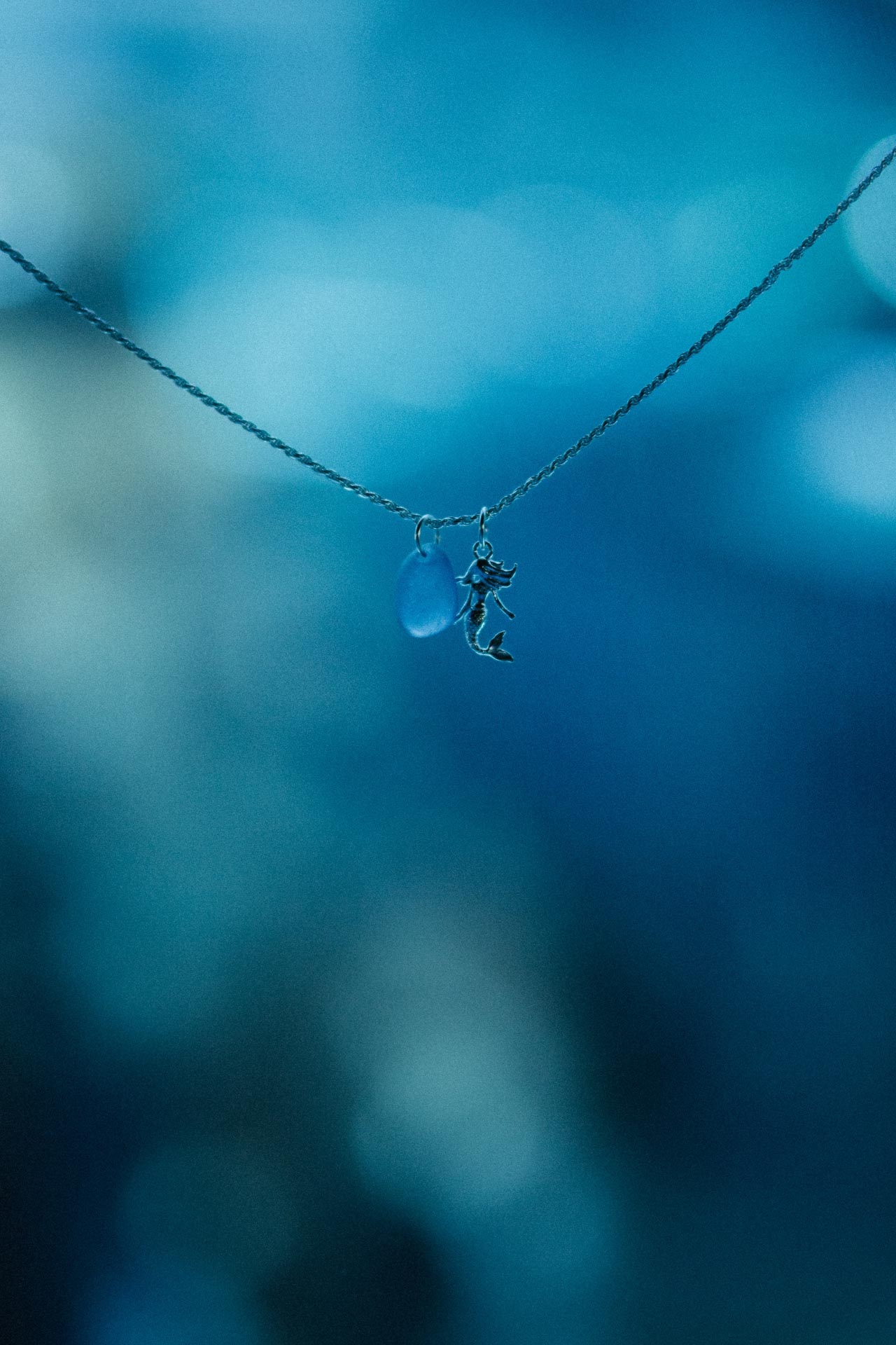 Naszyjnik o długości 45 cm z zawieszką w kształcie syreny i seaglassem.
